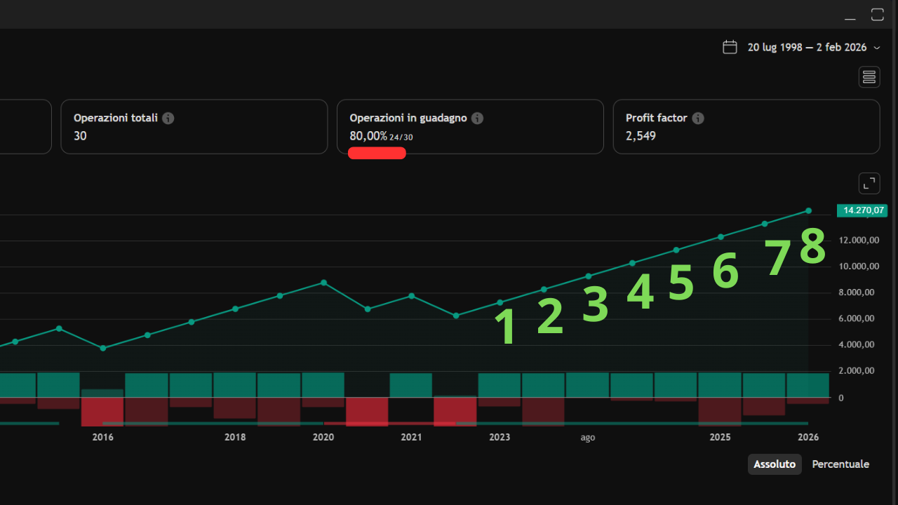 Per chiarezza espositiva abbiamo evidenziato le ultime 8 operazioni andate tutte in utile.