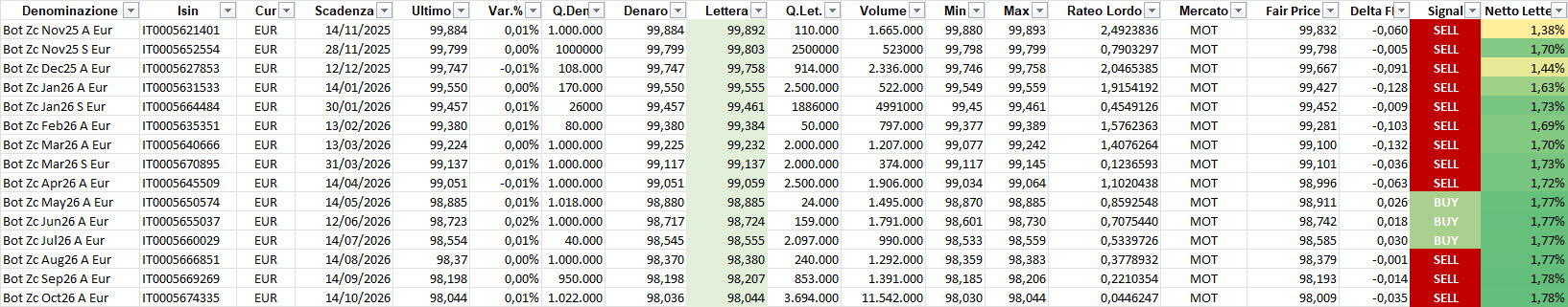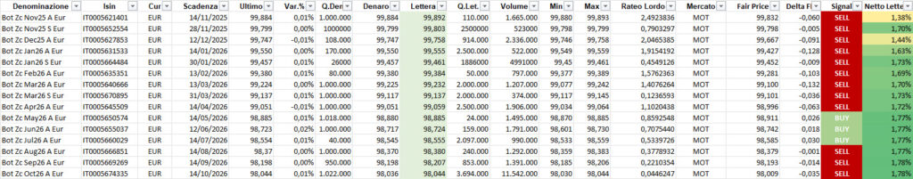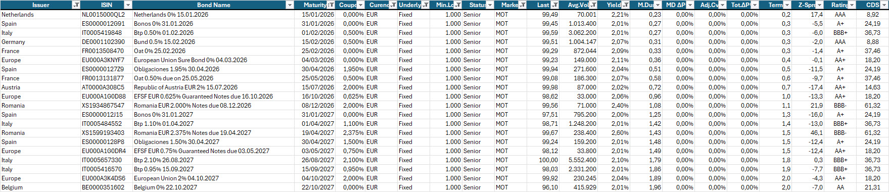 Sul tratto breve (scadenze fino al 2027), le opportunità restano presenti ma con un profilo di interesse in graduale riduzione: BOT e governativi a brevissimo termine stanno tornando su livelli di rendimento meno attraenti, pur mantenendo un ruolo fondamentale nella struttura del portafoglio come riserva di stabilità e componente di gestione della liquidità.