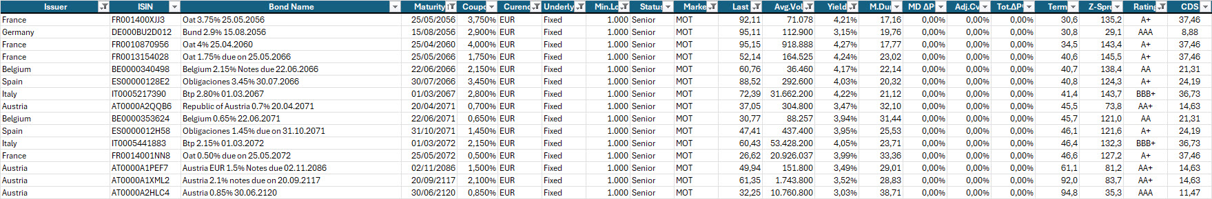 Selezione di governativi e sovranazionali area euro con scadenze axtra-lunghe per puntare su un ulteriore riduzione dei rendimenti sul tratto lunghissimo della curva.