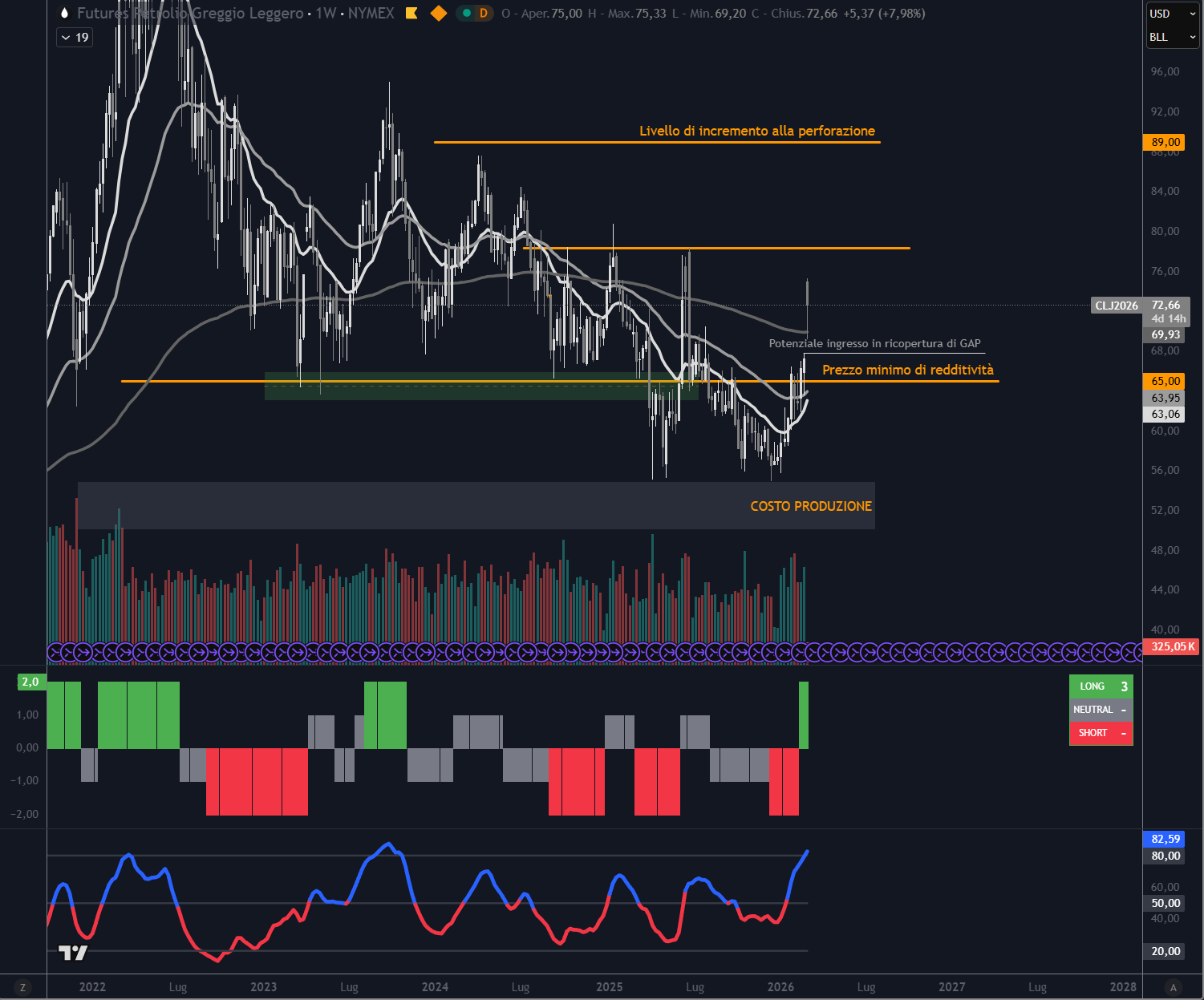 Chi ha un’impostazione più speculativa può valutare un tentativo in quest’area, ma resta valida una regola semplice: il prezzo deve fare quello che vogliamo noi, non va inseguito.