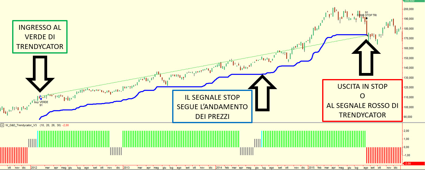 Il sistema calcola autonomamente i livelli di stop, al lettore non resta che seguirli