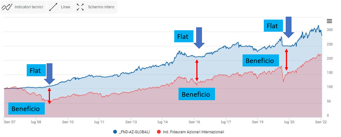 Secondo quanto riportato poc’anzi noi abbiamo deciso, in questa tipologia di portafogli modello, di lasciare la liberà al lettore, di scegliere come investire diversamente nei periodi in cui il portafoglio è flat.