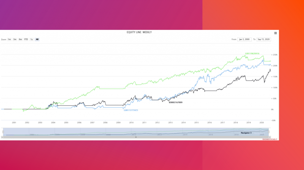 Selezionando più strumenti contemporaneamente le curve, siano esse equity o serie storiche, si mettono a confronto fra di loro.