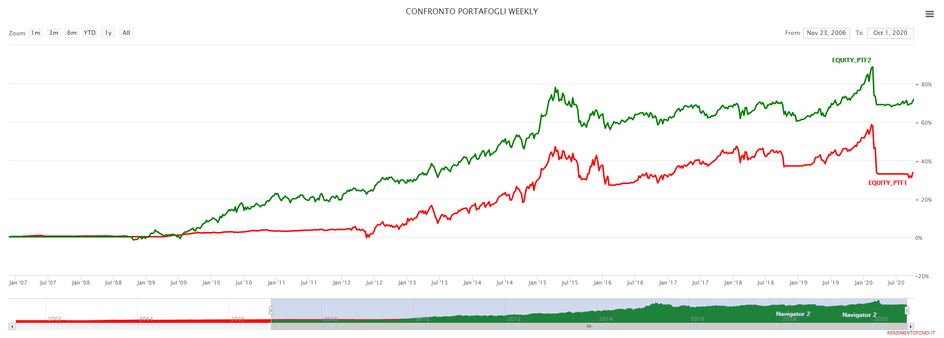 Sarà possibile da parte del lettore di CircoloInvestitori anche mettere a confronto due portafogli per valutarne graficamente le differenze in termini di performance.