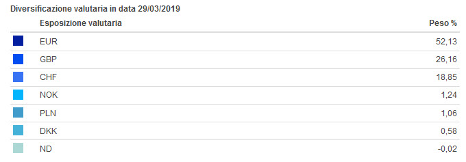 L’ETF ha spese annue (TER) pari allo 0,30% e la scheda informativa lo classifica con rischio 6 nella consueta scala da 1 a 7. Il comparto è denominato e quotato in Euro e non distribuisce dividendi. Dall’analisi storica ricaviamo una buona aderenza dell’ETF al sottostante, per cui il gestore lavora molto bene poiché il tracking error è del tutto trascurabile. Sempre dal prospetto sintetico ricaviamo sia l’esposizione valutaria sia la consistenza dei primi dieci titoli in portafoglio, come illustrato nelle figure a seguire.