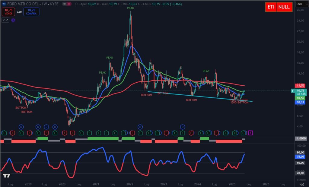 In questo scenario, il titolo Ford ha segnalato due END-BOTTOM consecutivi nelle ultime settimane.