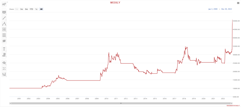 Il balzo di fine 2022 arriva in seguito a una vicenda nota, quella cioè della distribuzione di parte della “Riserva straordinaria”. Non commentiamo la notizia già reperibile altrove.