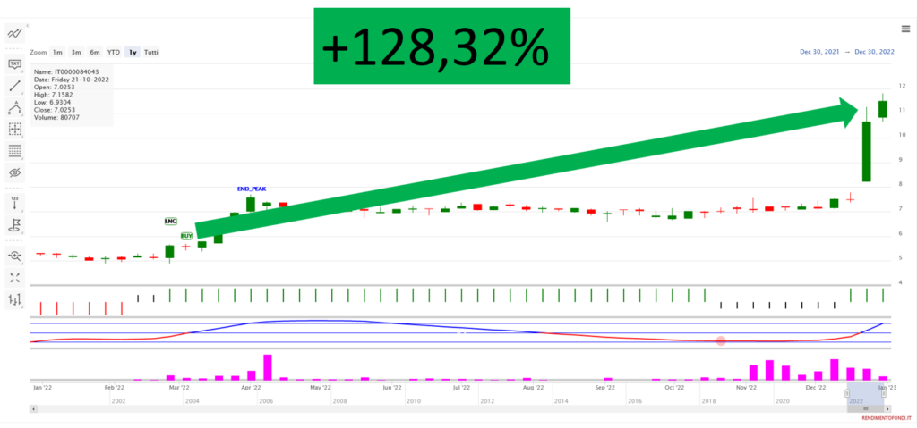 Oggi, dopo sette mesi, il Trendycator segna un guadagno del +128,32% con il titolo arrivato a quotare 12,9 euro per azione.
