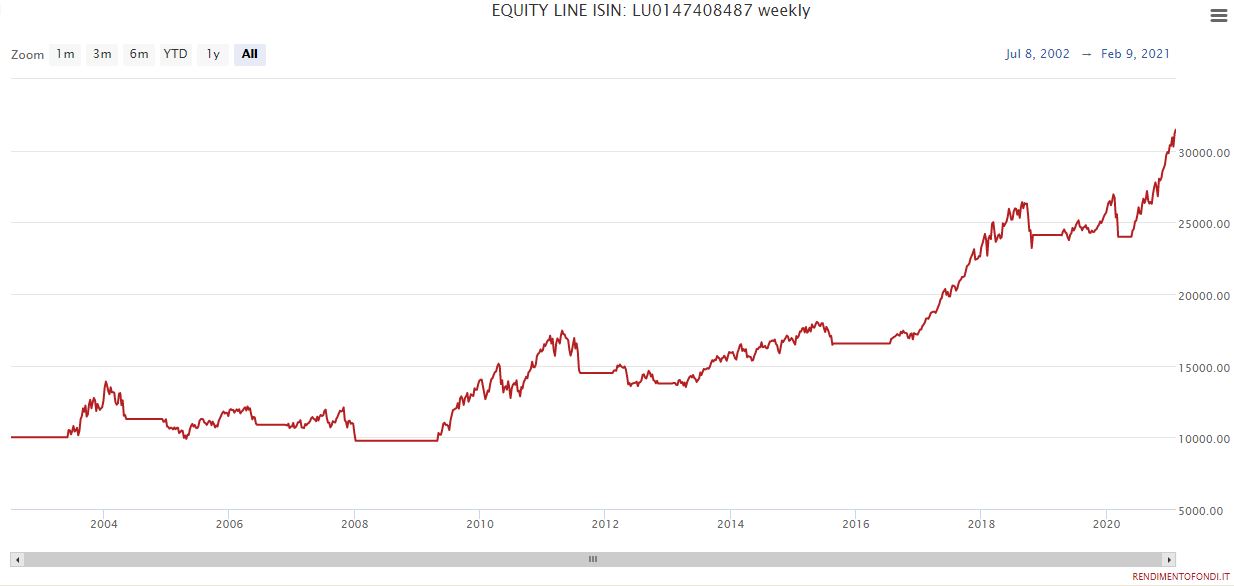 Nonostante gli inizi difficili, il BGF World Technology E2 – LU01474408487 ha saputo mantenere livelli costanti di crescita. Complice anche la svolta tecnologica nelle nostre vite quotidiane imposte dalla pandemia, il fondo ha saputo sfruttare il momento grazie alle sue posizioni in aziende di riferimento per l’industria tech. Attualmente, è un fondo molto valido, grazie a un sorprendente ETI superiore al valore di 106, e con un Trendy G/L TOT che supera il 217%. Ancora una volta, per concludere, sottolineiamo l’utilità del Trendycator: segnalando i momenti di stallo, l’investitore può impiegare altrove il proprio capitale; entrando invece in posizione quando il fondo produce utili l’investitore può invece impiegare nel determinato fondo i propri risparmi.