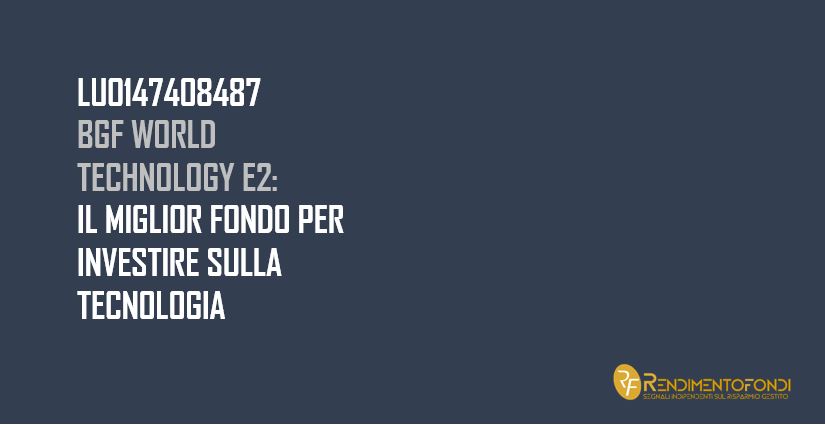 Il BGF World Technology E2 – LU0147408487 è un fondo di tipo azionario istituito nel 1995. Il patrimonio totale del fondo ammonta a quasi 13,4 miliardi di dollari; inoltre, per quanto riguarda la classe di azioni E2, la valuta di riferimento è il dollaro e il valore stimato di ogni azione è attualmente di 80,19 dollari.