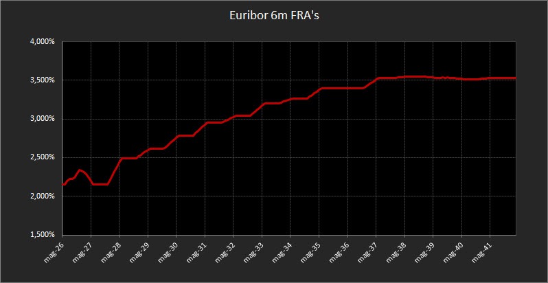 Sul comparto monetario, i forward sull’Euribor a 6 mesi mostrano una risalita più evidente. Il mercato individua ora un tasso di equilibrio intorno al 2,15%, un livello leggermente superiore rispetto alla scorsa settimana.