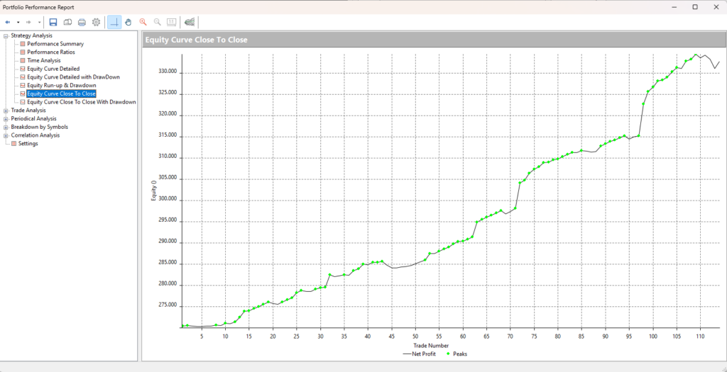 L’annual Rate of Return è del 5.85% stando ai dati della piattaforma Multicharts.