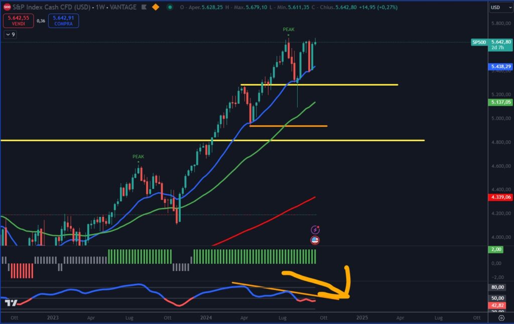 Anche il Trendycator Oscillator è in divergenza negativa da diversi mesi a testimonianza (Anche senza leggere il COT) del fatto che le mani forti hanno mollato la presa sull’indice americano. Abbiamo parlato di questo, e della possibile rotazione settoriale nel nostro ultimo video qui: https://youtu.be/ZSvWG3iRJRo
