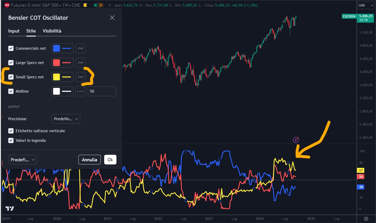 Anche il Trendycator Oscillator è in divergenza negativa da diversi mesi a testimonianza (Anche senza leggere il COT) del fatto che le mani forti hanno mollato la presa sull’indice americano. Abbiamo parlato di questo, e della possibile rotazione settoriale nel nostro ultimo video qui: https://youtu.be/ZSvWG3iRJRo