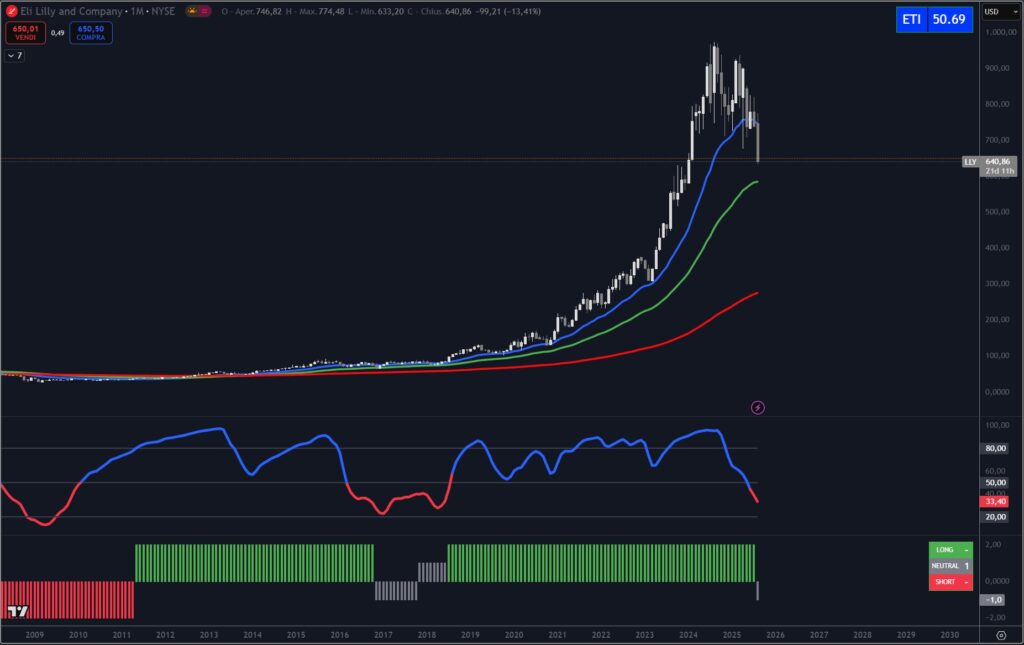 Negli ultimi dieci anni, Eli Lilly è passata da circa 90 a quasi 1.000 dollari per azione, in una delle traiettorie più forti del settore farmaceutico.