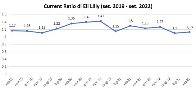 Osservando il grafico qui in basso, possiamo analizzare l’andamento del tasso di liquidità di Eli Lilly nel corso degli ultimi 3 anni. Come si può facilmente notare, l’azienda è stata capace di tenere un rapporto superiore al 1.