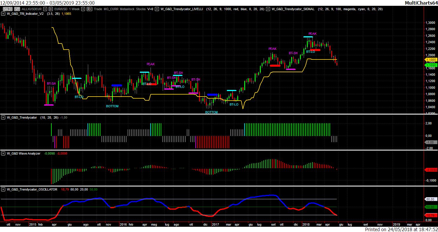 Vi è da dire infine che il modello Trendycator, sul cambio EUR/USD con scala daily (quindi di breve termine) ha già confermato la ripresa della valuta USA contro Euro; tuttavia come sapete noi preferiamo osservare le dinamiche su scala settimanale, poiché cerchiamo movimenti di medio respiro e soprattutto con meno “rumore” nella formazione dei trend