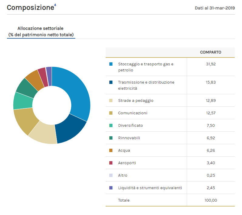 Partirò prendendo in esame un fondo infrastrutture attualmente presente nel nostro portafoglio, in particolare allo scopo di metterne in risalto le peculiarità del comparto di appartenenza; come detto ho scelto uno dei fondi attualmente presente nel nostro portafoglio fondi tematico, ma quanto segue è concettualmente valido per tutti i fondi tematici.