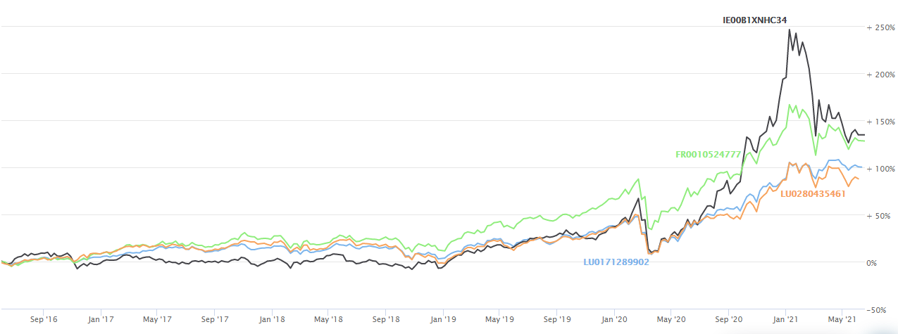 | Lyxor New Energy (DR) UCITS ETF – Dist | FR0010524777 | ETF | +128,45% |