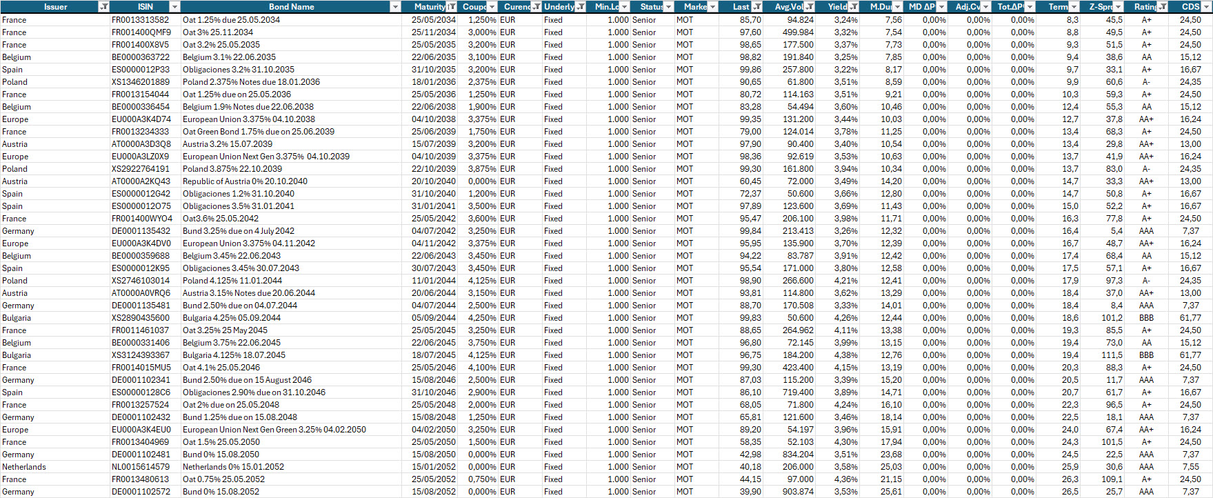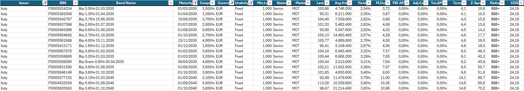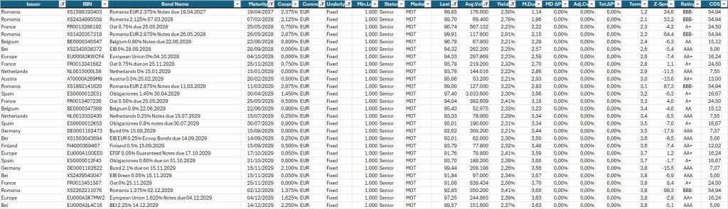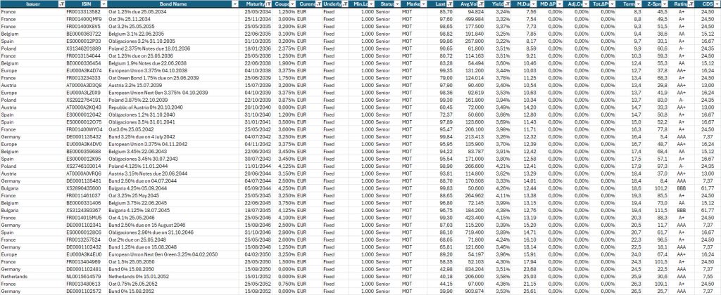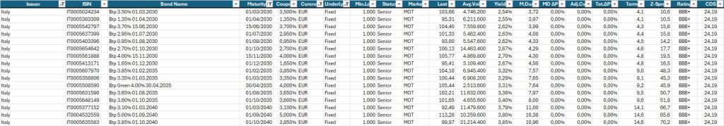 Passiamo quindi alla selezione dei bond coerente con questa architettura. Qui sotto, la consueta selezione di obbligazioni a titolo di esempio.