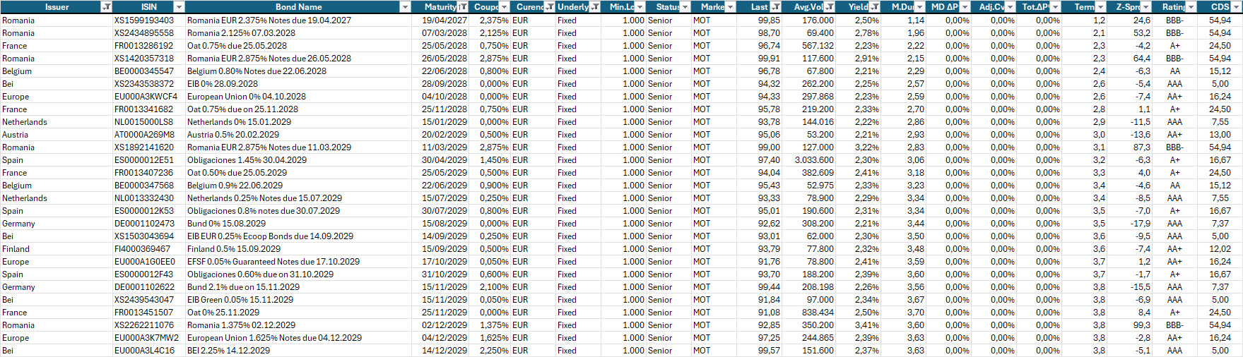 Selezione di governativi, sovranazionali e corporate area euro con scadenza entro il 2029, buona liquidità, prezzo sotto 100 e rendimento a scadenza almeno pari al 2,20% lordo annuo.