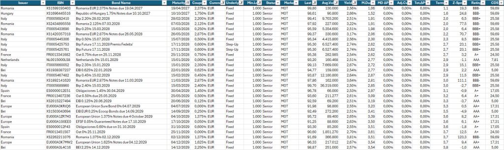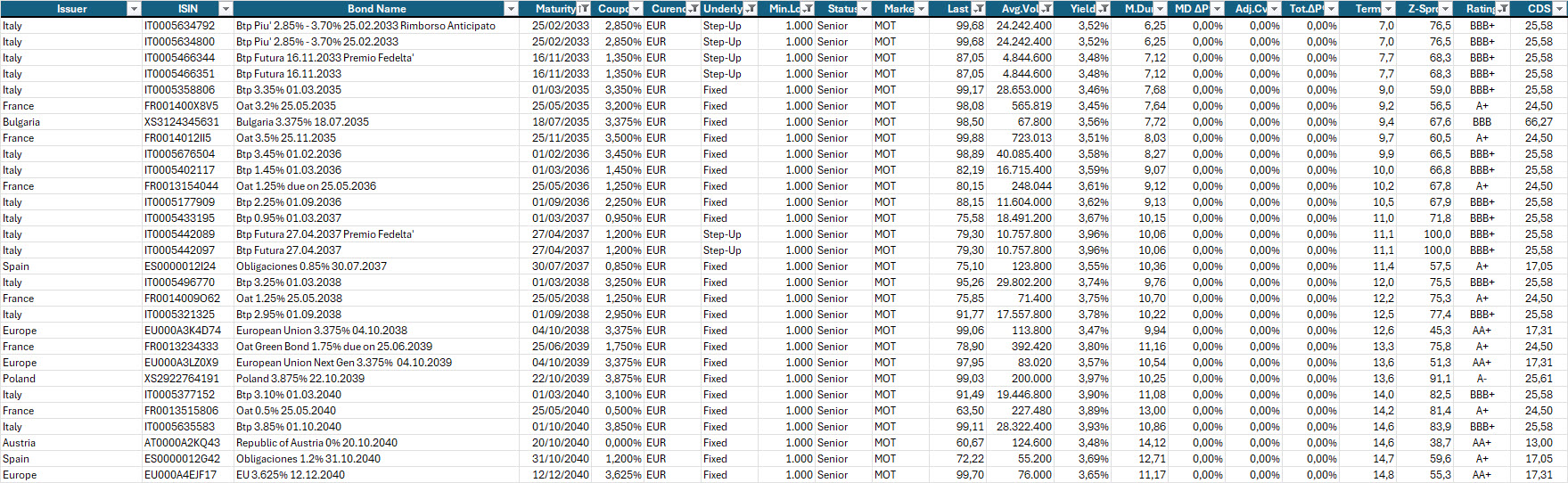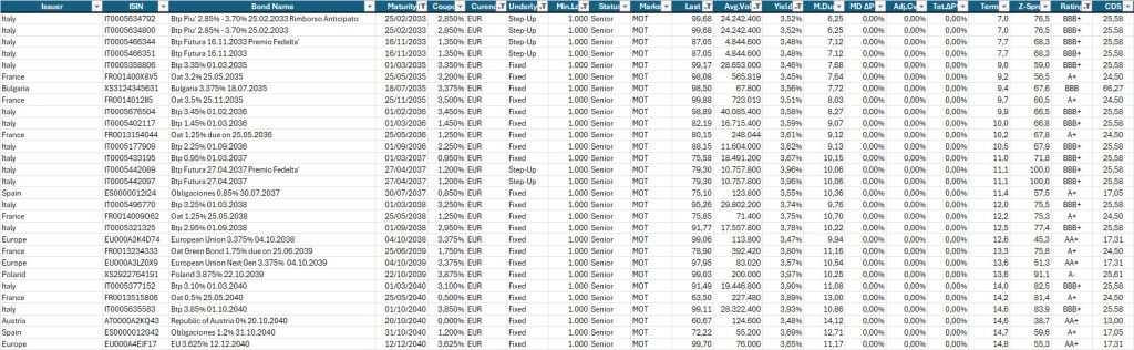 Passiamo ora alla selezione delle obbligazioni coerenti con questa impostazione.