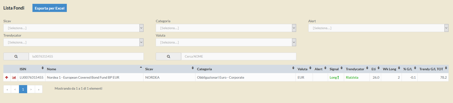 Stiamo parlando nuovamente del Nordea 1 – European Covered Bond Fund BP EUR – LU0076315455, il quale ha ancora un valore di ETI interessantissimo, pari a 26.