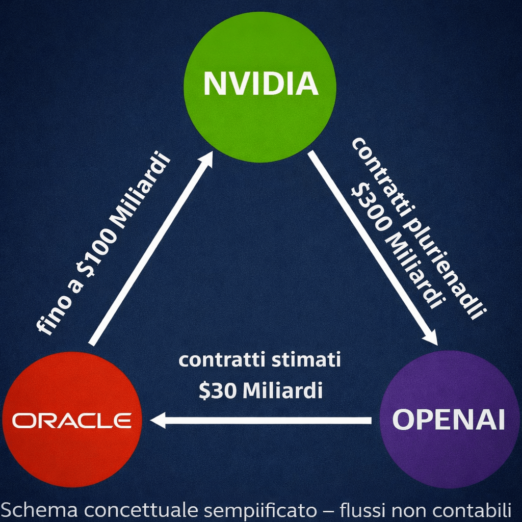 - Nvidia, OpenAI e Oracle rappresentano un esempio di interdipendenza tra investimenti, contratti infrastrutturali e domanda di hardware.