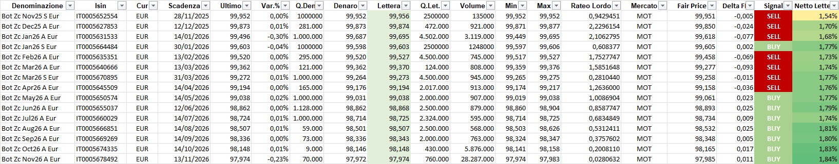 Focus sui BOT, con evidenza dei più interessanti poiché sottovalutati in termini relativi in rapporto al prezzo teorico.
