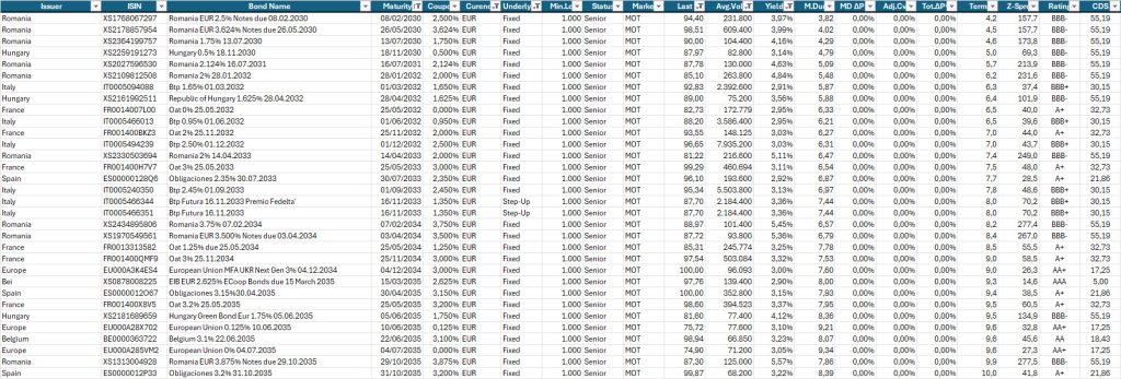Qui sotto, la consueta selezione di obbligazioni a titolo di esempio.