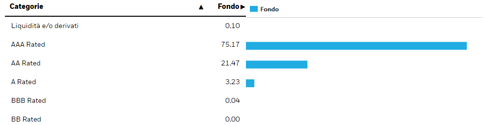 Come facilmente intuibile, investendo quasi esclusivamente in Paesi sviluppati, i rating delle obbligazioni non possono che essere eccellenti: