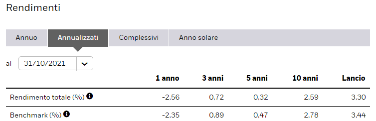 Il rendimento del fondo è ben poca cosa attualmente, ma abbiamo visto nell’introduzione di questo articolo che stiamo inserendo in portafoglio uno strumento fortemente difensivo.