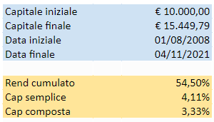 Sappiamo quale può essere la prima critica che potremmo ricevere: tenere un ETF in portafoglio per 13 anni, con un flusso cedolare davvero basso (stiamo parlando dello 0,25% circa) è un caso limite, che funziona solamente se pensato sul lungo periodo.