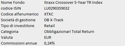l’ETF non distribuisce dividendi e mira a replicare l’Indice iTraxx® Crossover 5-year TOTAL RETURN INDEX® il quale comprende 50 compagnie europee con credito di rischio inferiore all’Investment grade.