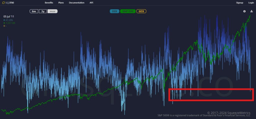 Nel nostro precedente articolo “Le Dark Pool fanno paura” abbiamo introdotto il tema delle Dark Pool spiegando cosa sono e perché una lettua attenta di questo grafico può essere utile all’investitore. Ricordo il sito ufficiale: https://squeezemetrics.com/monitor/dix
