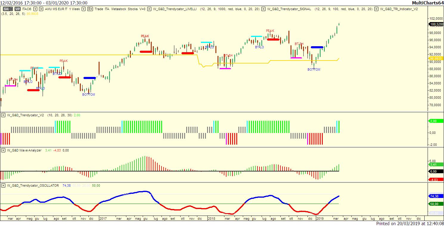 L’analisi grafica di AMUNDI MSCI EUR MIN VOL LU1681041627 ci mostra anche in questo caso il Trendycator LONG da una settimana con la seconda attualmente in formazione. Identica anche la situazione da cui si proviene, e cioè dal BOTTOM di fine 2018.