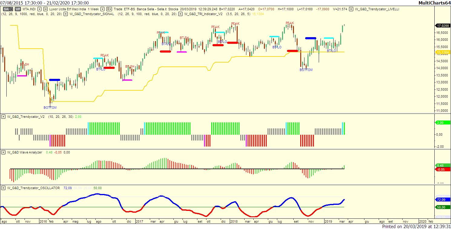 L’analisi grafica di LYXOR ETF MSCI INDIA FR0010361683 ci mostra il Trendycator LONG da una settimana con la seconda attualmente in formazione. Come visto per molti asset in questi ultime mesi, abbiamo anche qui il comune denominatore di un bel BOTTOM a fine 2018.