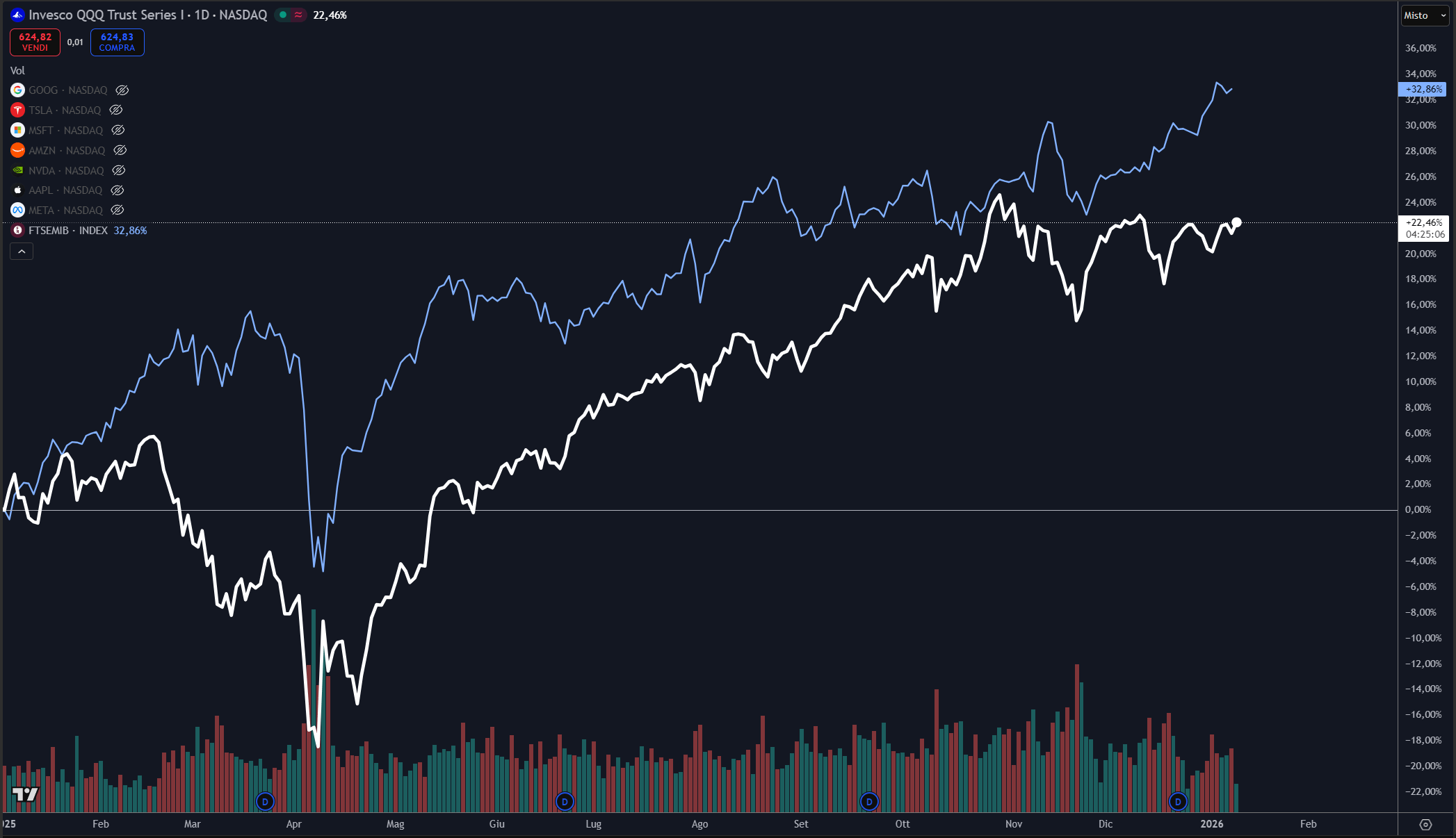 Addirittura, persino il nostrano indice FTSEMIB ha saputo fare meglio di un 10% circa.