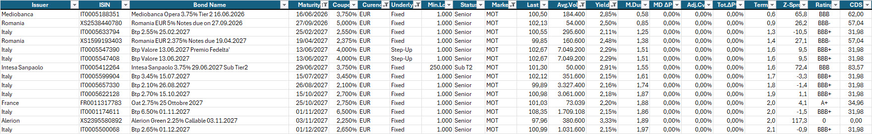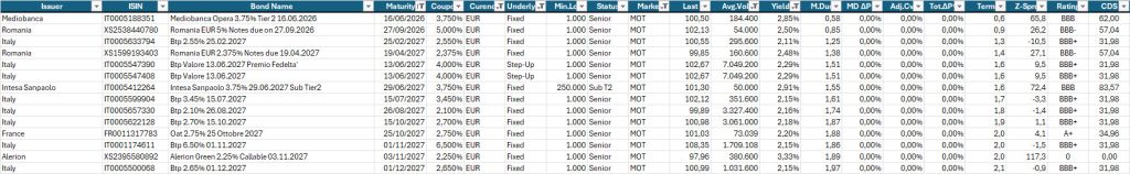 Qui sotto, la consueta selezione di obbligazioni a titolo di esempio.