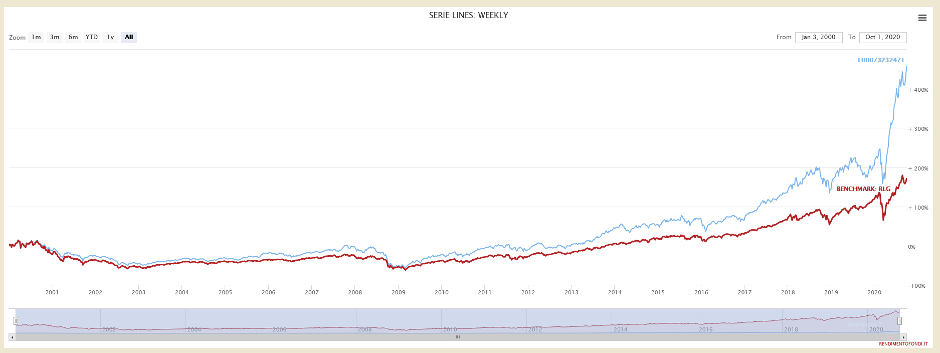 assolutamente in linea con il precedente risultato del benchmark. Sorprende però la successiva cavalcata che ha portato il fondo dal 20 Marzo ad oggi guadagnare il +129.75%! Non possiamo definirla diversamente se non come bravura del gestore. Perché dunque decidere di confrontare questo fondo