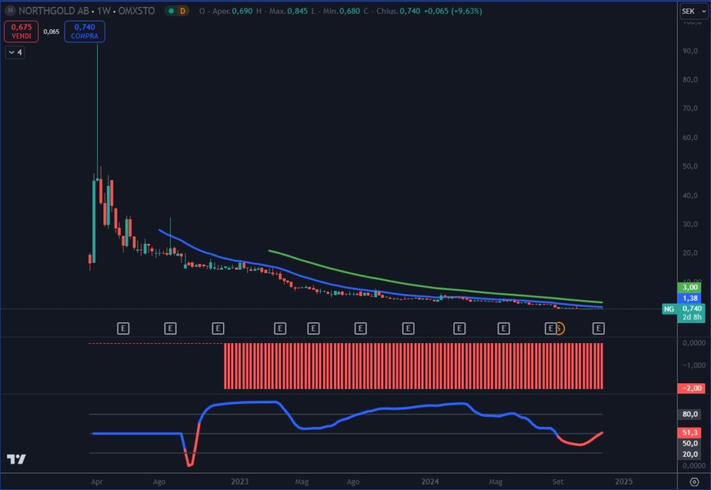Osservando il grafico di Northvolt verrebbe da dire “da zero a cento” e ritorno, con un Trendycator mai diventato verde nella storia del titolo svedese.