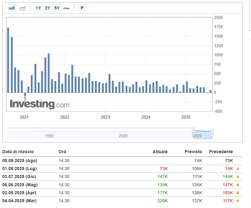 La coincidenza di questi due fattori – oro sui massimi e NFP decisivi – definisce l’impianto di settembre. Da un lato, gli investitori cercano protezione; dall’altro, restano in attesa del dato macro più importante del mese. Il paradosso è che entrambi i fronti raccontano la stessa storia: quella di mercati che, sotto l’apparente stabilità, restano appesi a poche variabili chiave.