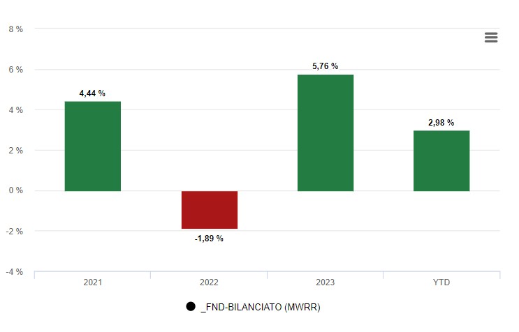 Il rendimento annuale del portafoglio migliori Fondi Bilanciati è stato del 4%.