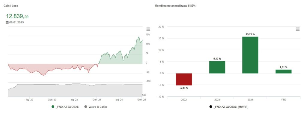Il rendimento annuale del portafoglio migliori Fondi Azionari è stato del 2,7%.