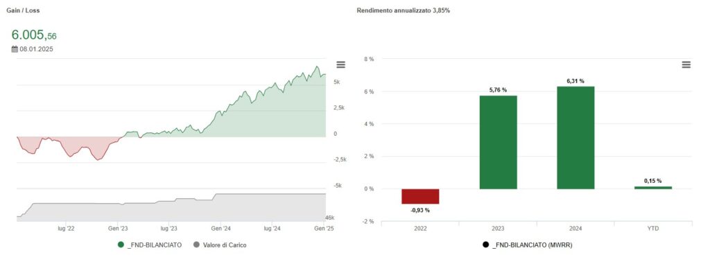 Il rendimento annuale del portafoglio migliori Fondi Bilanciati è stato del 3,85%.