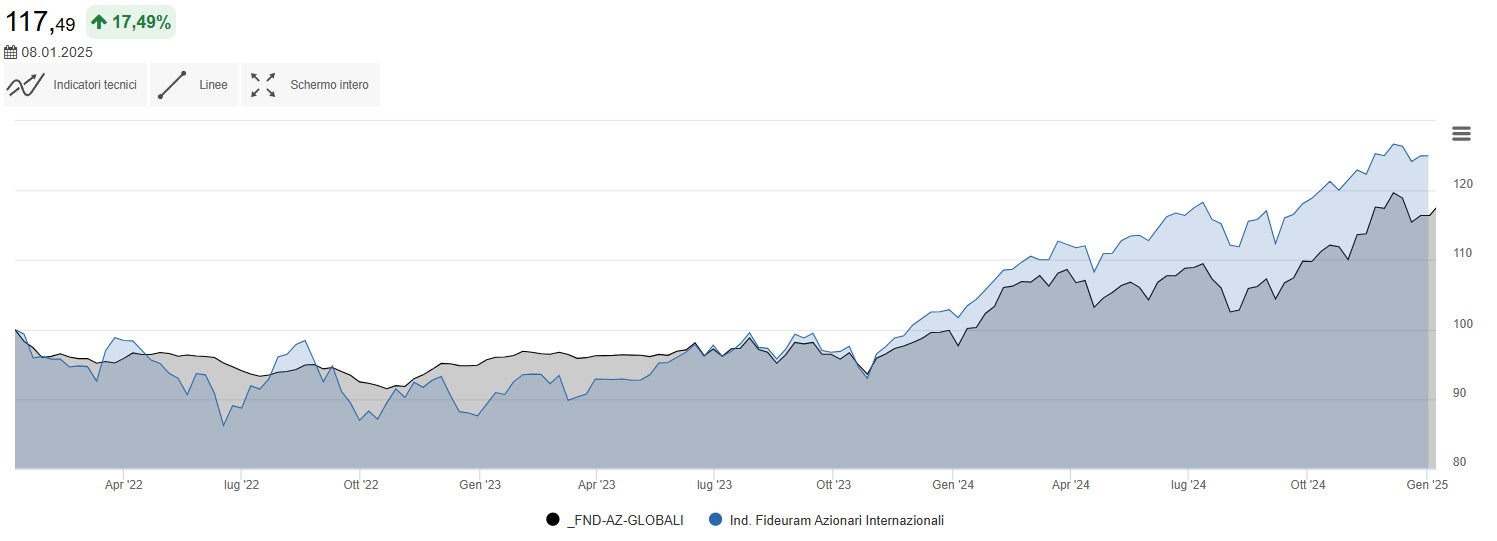 In questo caso, nei tre anni si registra un andamento in linea con il suo benchmark.