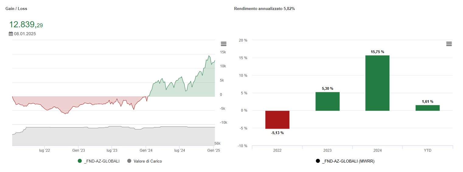 Il rendimento annuale del portafoglio migliori Fondi Azionari è stato del 2,7%.