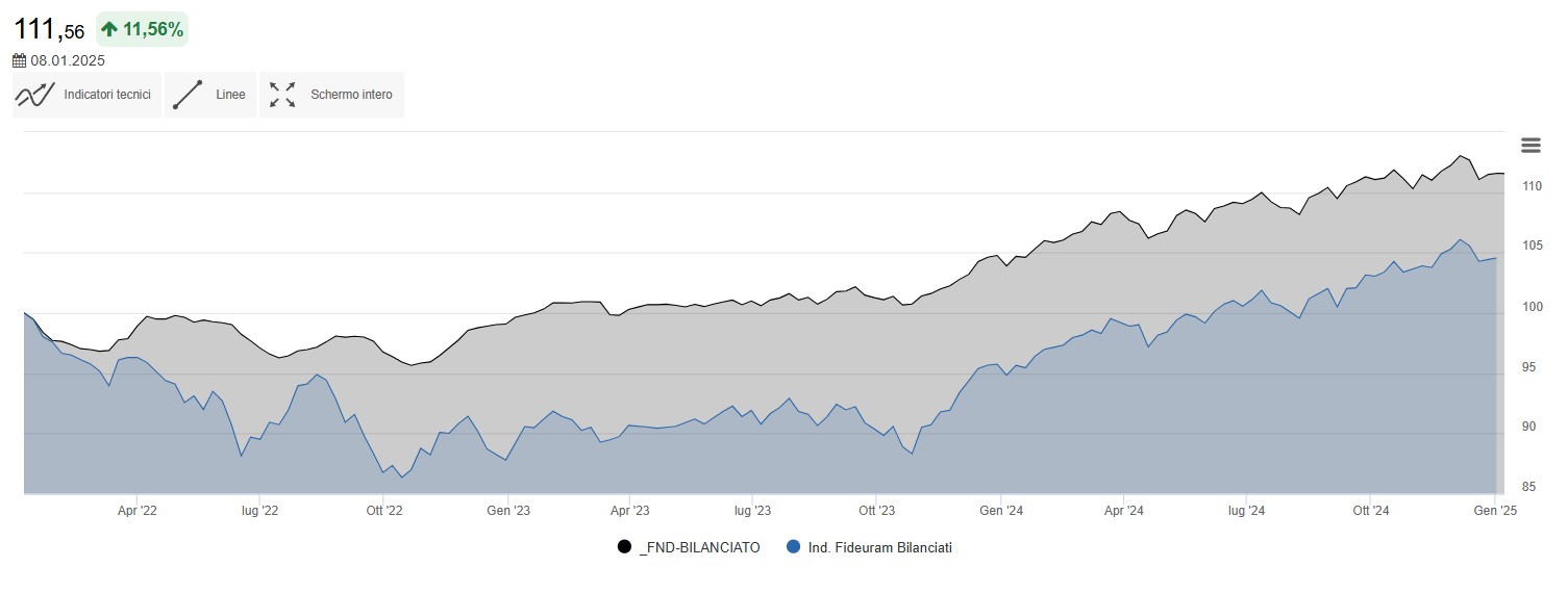 Il rendimento annuale del portafoglio migliori Fondi Bilanciati è stato del 3,85%.