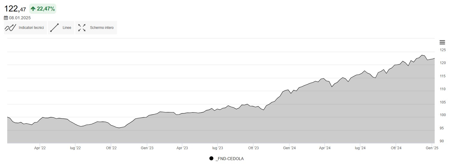 In questo caso non mostriamo alcun benchmark di riferimento in quanto non esiste un benchmark realmente assimilabile ai fondi che distribuiscono cedole.
