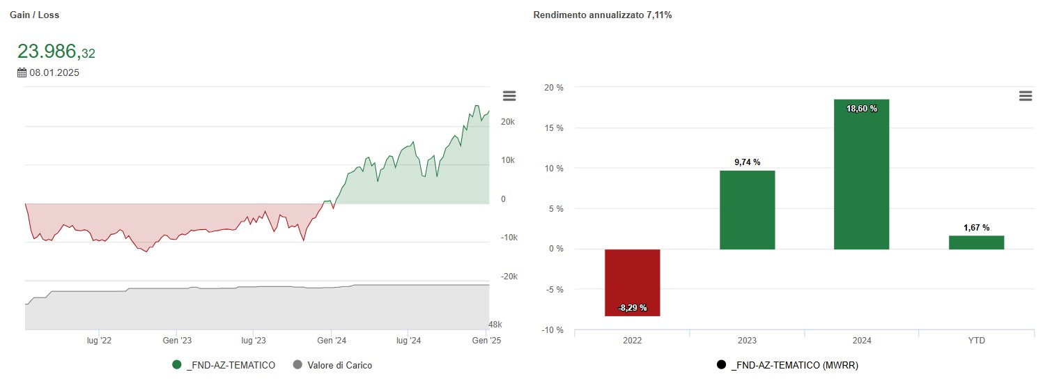 Il rendimento annuale del portafoglio migliori Fondi Tematici è stato del 7,11%.